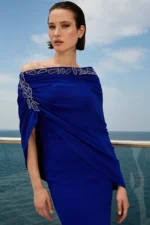 Maestri Haute Couture σκούρο μπλε maxi φόρεμα